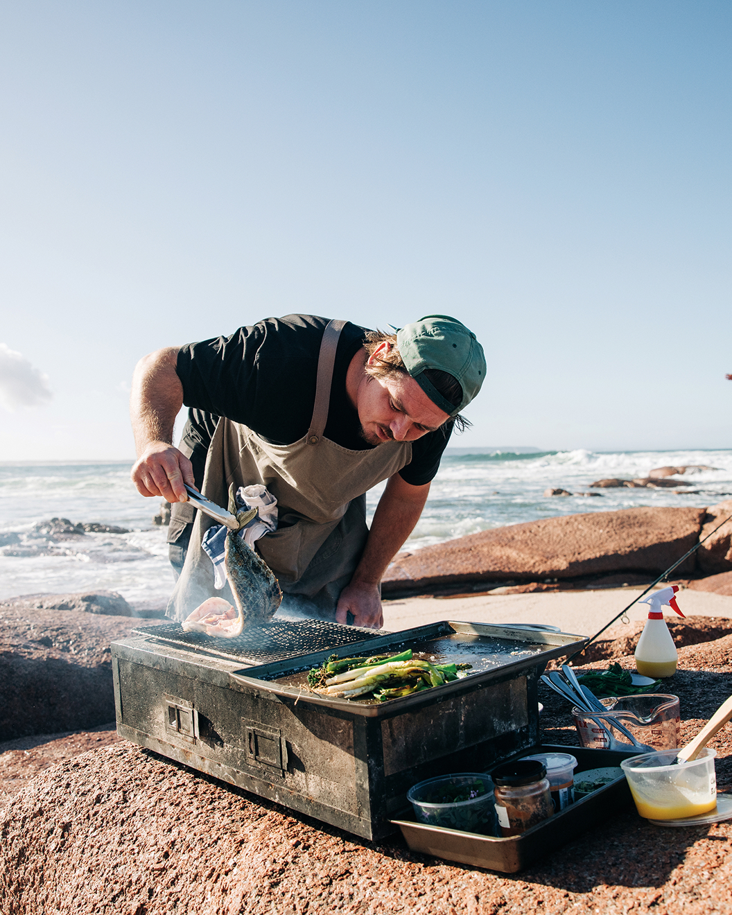 Cooking over coals and open fire is central to how we express this connection: fire shapes texture, smoke adds dimension, and the natural environment becomes part of the cooking. Whether you’re dining beneath the stars, beside the beach, or around a communal fire‑pit, you’ll notice the care in every ingredient, the restraint in seasoning, and the clarity of flavour.